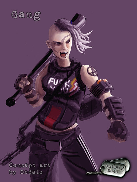 The cities of the new age, giant sprawling urban masses, are also the home to violent gangs. Left unchecked by the security services in the darkest areas of the cities lawlessness exists in an almost polar opposition to the totalitarian system that controls the majority of the population. The lawless zones are infrequently visited by the USE and in turn the gangs provide their own form of control, creating a dependency on their existence through their network of drug labs and supply, it is whispered that the meanest USE security troops often launch their security sweeps tanked up on a narcotic high and that the gangs and their slum fortresses are as much a tool of the USE as a thorn in the side, either way the dependence on their chemical filth helps maintain the status quo, with the ants of the cities working long and hard to feed their addiction, daring not to speak or even think out of line for fear of losing the one tiny escape from their lives.