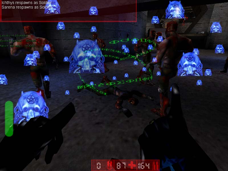 In U4E-Fortress, you choose Professions to train your U4E Monster classes in. These effect the abilities of your characters and the weapons they spawn with. And even the professions themselves are far from cut and dry Fortress standards. For instance, the Cyberknight wields techno-medieval weapons and has the ability to call down Particle Cannon blasts from outerspace. And the Wizard uses an RPG experience system to learn from a list of over 50 different spells from 6 schools of magic. (Ever wanted to turn somebody into a Rabbit?). It's like Harry Potter with pubs! And every Profession comes fully stocked with new weapons and abilities, never before seen in any other U4E release!