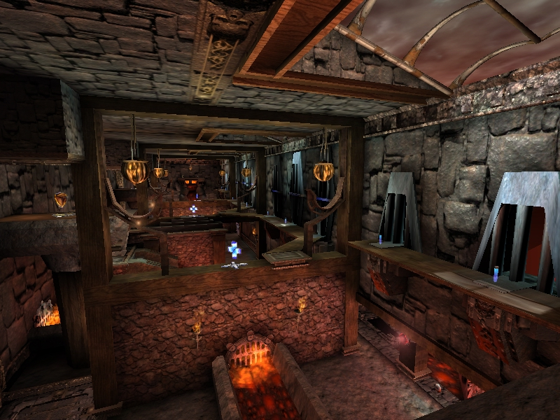 Devil's Lair is a place created by pure evil so he may endure the pleasure of Unreal Tournament. Lucifer isn't just all work and no play. He designed this "Hell" for enjoyment, sportsmanship, torture, and a chance to gain some souls. The Lair consists of titanium bar windows electrified for your pleasure (or pain). Make sure you keep away from things that get hot... heh heh! You might find yourself smokin'! To make things more... interesting, Satan took the liberty of installing a nuker but with limited access. (I think he wants you to figure that out.) But it will take "teamwork" to really raise some hell. The trofts are filled with flesh,bone, and "lost" souls of warriors defeated in Satan's Lair.