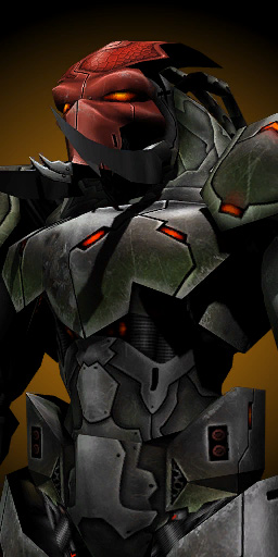 Mekkor is from the Black Fist Clan, sworn enemies of the Iron Skull Clan. Severely injured in battle, he is testing his new cybernetic armor in the Tournament. Notes: Mekkor features on the box art for UT2004 ECE. |