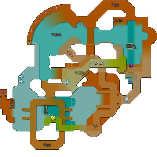 | Rocket Launcher | 1 | 4 | 1 above Bio, 1 above Shock, 1 near eastern teleporter, 1 on top level |