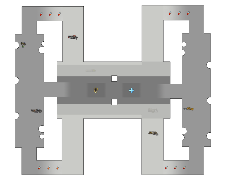 | Rocket Launcher | 1 | 3 | 2 at top of NW slope. 1 at top of NE slope |